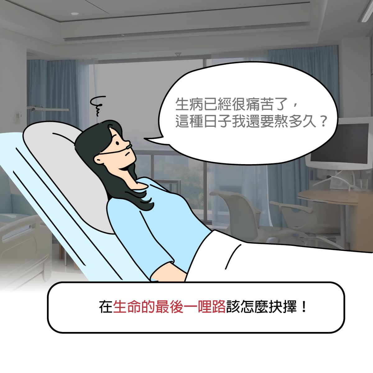 看完本篇文章後,如果在疾病重症時,您會如何抉擇您生命的最後結局呢?生與死是否該操縱在自己手中?是讓生命最後仍保有品質且欣然接受死亡勇赴黃泉,抑或是將軀殼裝上維持器縱使意識已不再這個世上,仍無謂且無意義的「活著」呢?